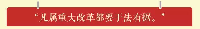 ——第二次会议上,习近平强调,“凡属重大改革都要于法有据。在整个改革过程中,都要高度重视运用法治思维和法治方式,发挥法治的引领和推动作用,加强对相关立法工作的协调,确保在法治轨道上推进改革。”