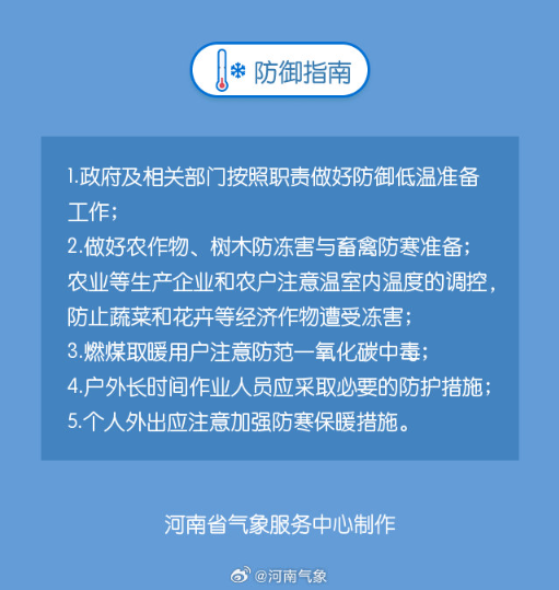 21日凌晨,安阳、濮阳、鹤壁、新乡、三门峡、洛阳南部、郑州东部和西南部、开封、商丘、周口、许昌、漯河、平顶山东南部、驻马店、信阳北部部分县(市、区)最低气温降至零下12℃到零下10℃。请注意防范。上述地区的相邻县(市、区)也需关注。