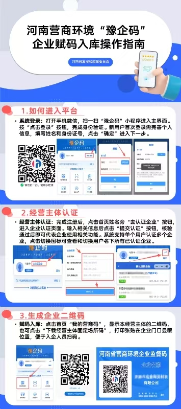为进一步规范行政职能部门入企工作流程,强化企业群众监督。2025年9月25日,河南省发展和改革委员会、河南省司法厅联合下发《关于加快推进全省营商环境“扫码入企”监测管理工作落实的通知》。为方便企业和个体工商户自主完成登记,现将具体操作公示如下: